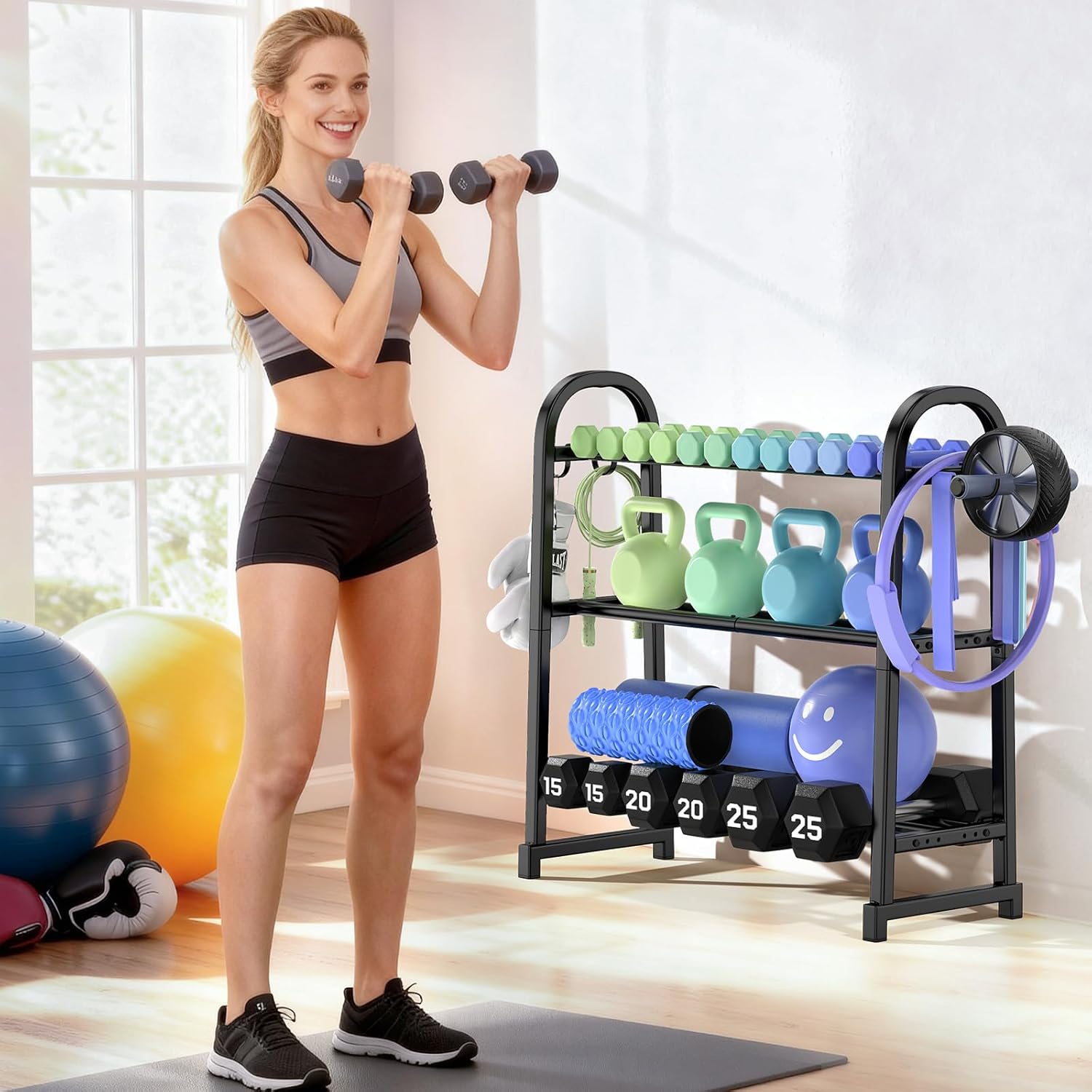 EASY INSTALLATION: This 3-tier weight storage racks comes with all necessary hardware included, making it a breeze to install. Comes with easy instructions and a video guide.