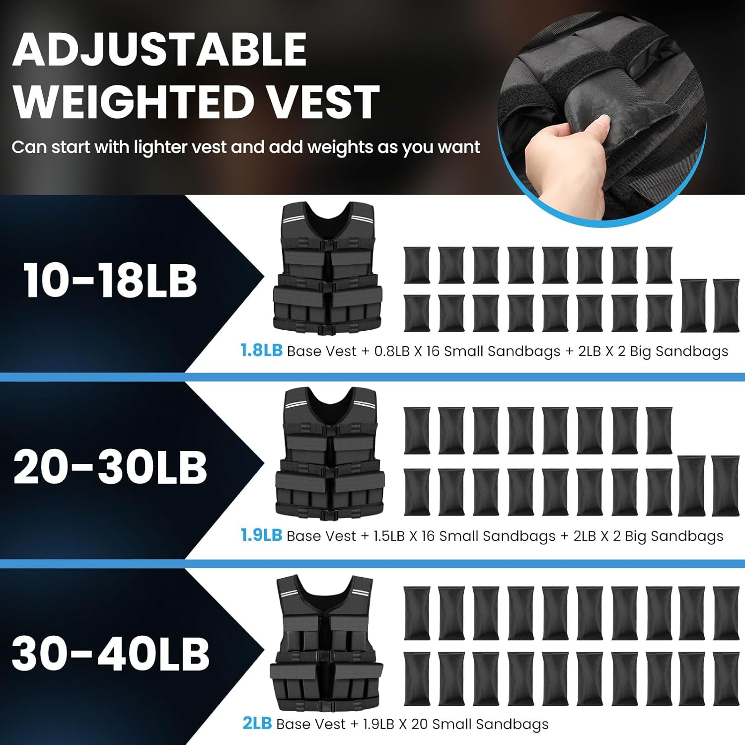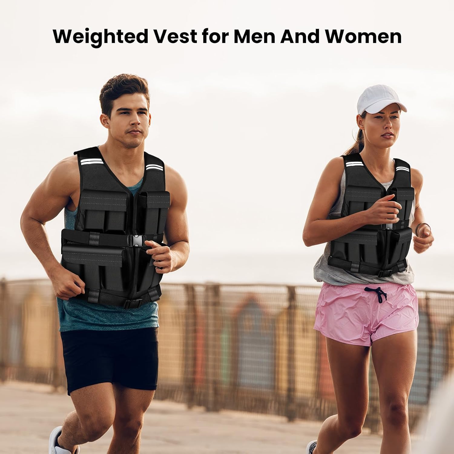 Adjustable Weight Vest: The weight vest features an adjustable size buckle design, making the weighted vest more inclusive and suitable for a variety of body types, allowing the weight vest to fit more closely, increasing comfort and effectiveness during exercise