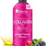 Zena Nutrition Liquid Collagen Peptides (Type 1 & 2) & 5000mcg Biotin, 2500mg Verisol Bioactive Collagen Peptides, Hair, Skin, Nail Supplement for Women & Men, Mixed Berry, 60 Servings, 20.3 fl oz
