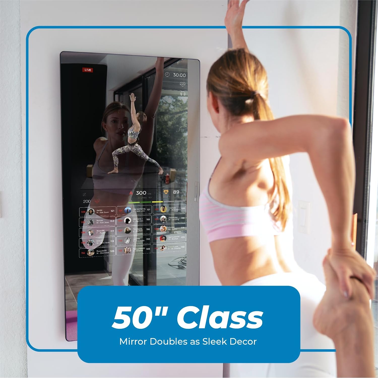 Touchscreen Display & Live Streaming Content: The mirror uses cloud-based streaming video technology to offer exclusive Echelon Mirror Reflect classes with a smart fitness mirror. The touchscreen display is easy to use, sweat-proof, & WiFi-enabled.