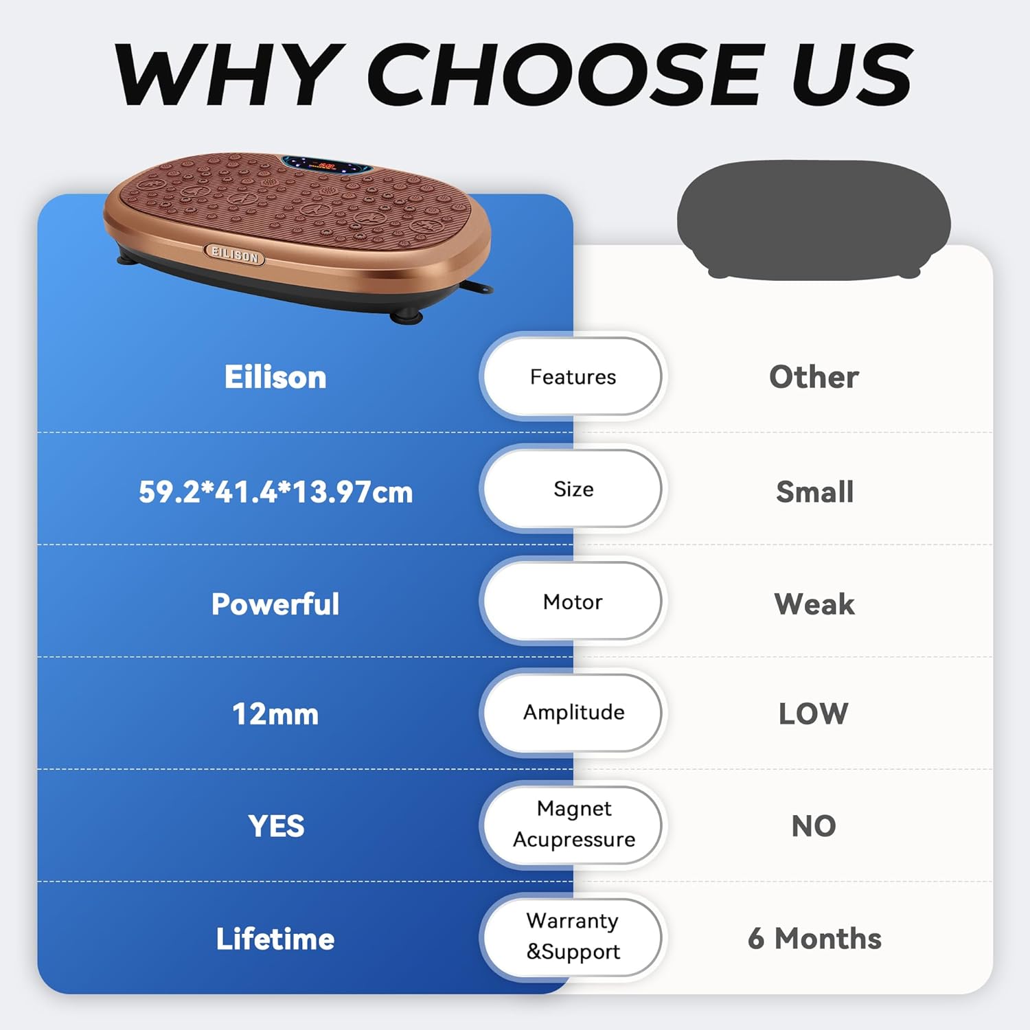 CUSTOMER SUPPORT: Eilison’s vibration platform machine is engineered to deliver unparalleled quality and industry-leading specifications. We are dedicated to providing you with outstanding support. For any inquiries or concerns regarding your vibration plate, please reach out to us directly