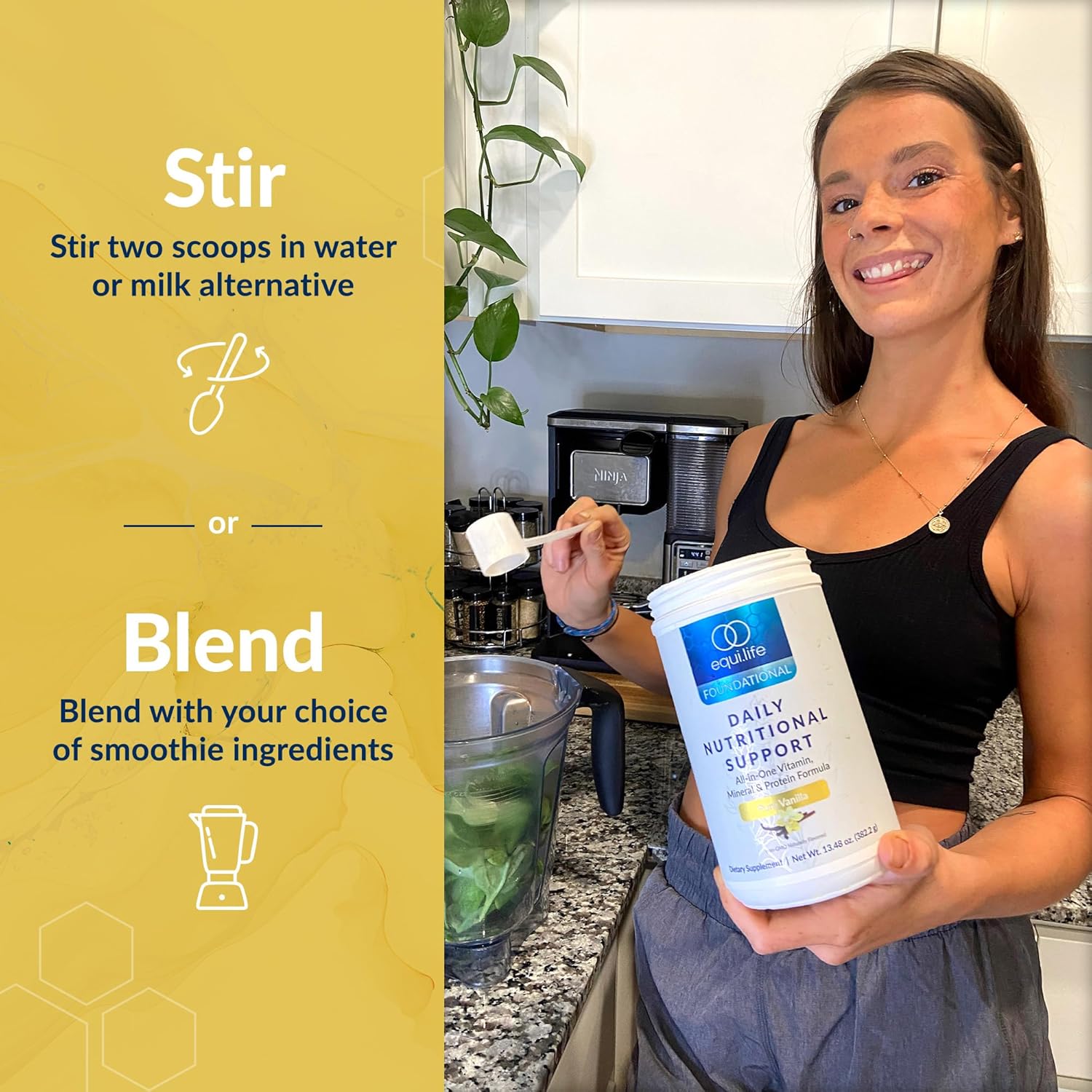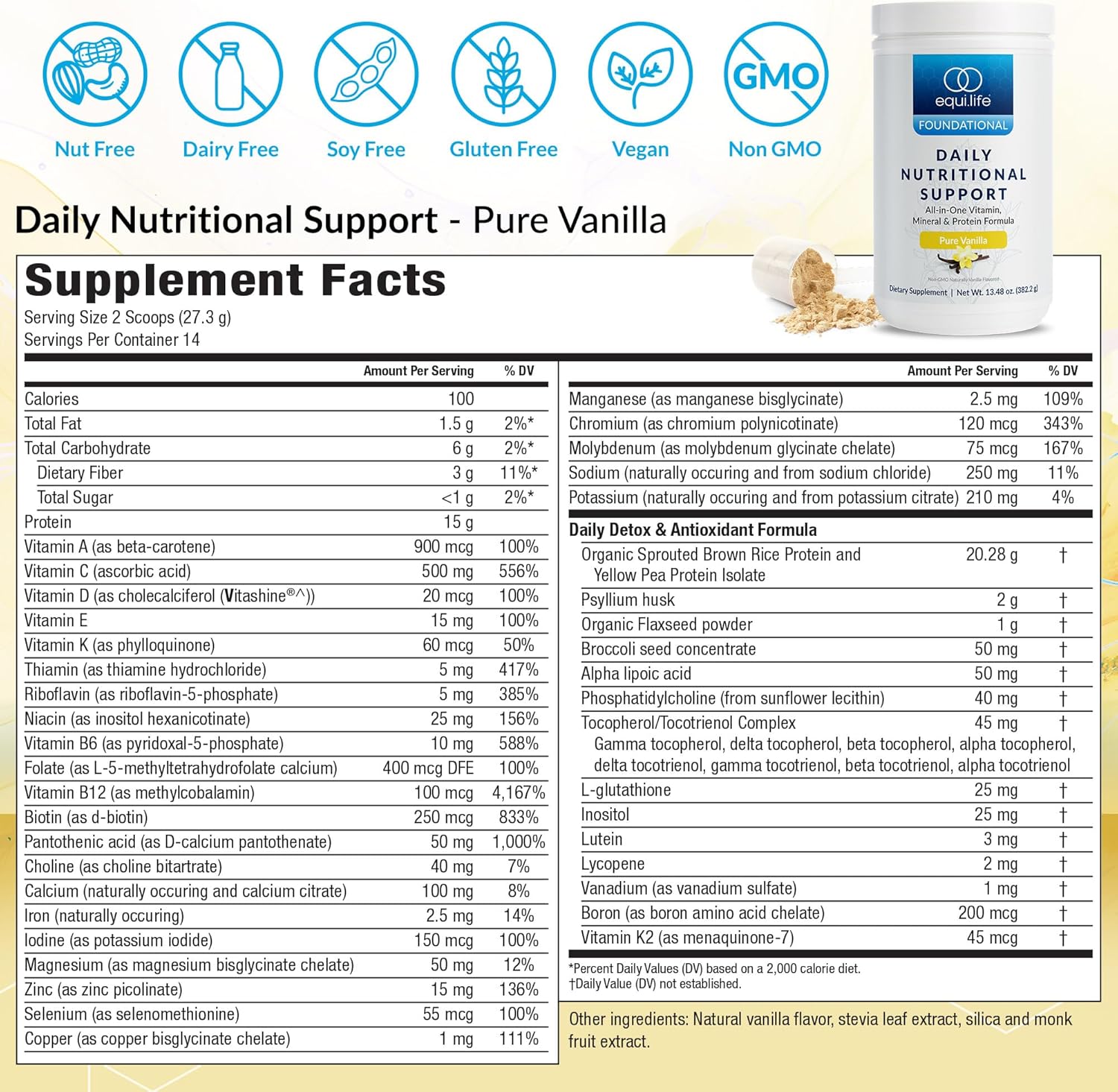Equilife Daily Nutritional Support, All-in-One Multivitamin Meal Replacement, Pure Vanilla Flavor, 15G Plant Protein, Supports Overall Wellness Including Energy, Digestion, & Skin, 14 Servings Tub