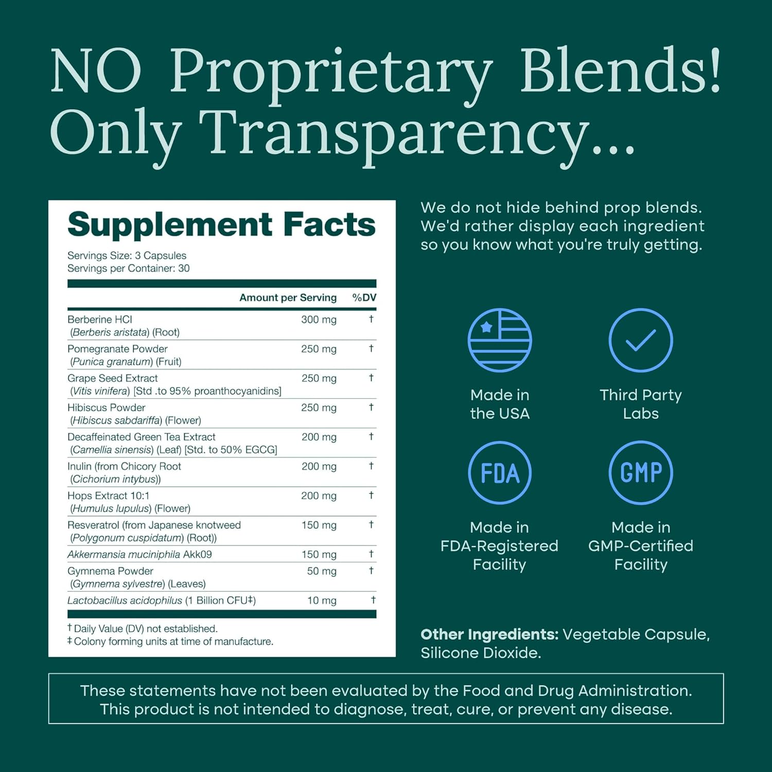 [Metabolic Wellness & Energy Support] Berberine, EGCG, and Resveratrol support metabolic activity and energy utilization, helping you feel more balanced and work as appetite suppressant.