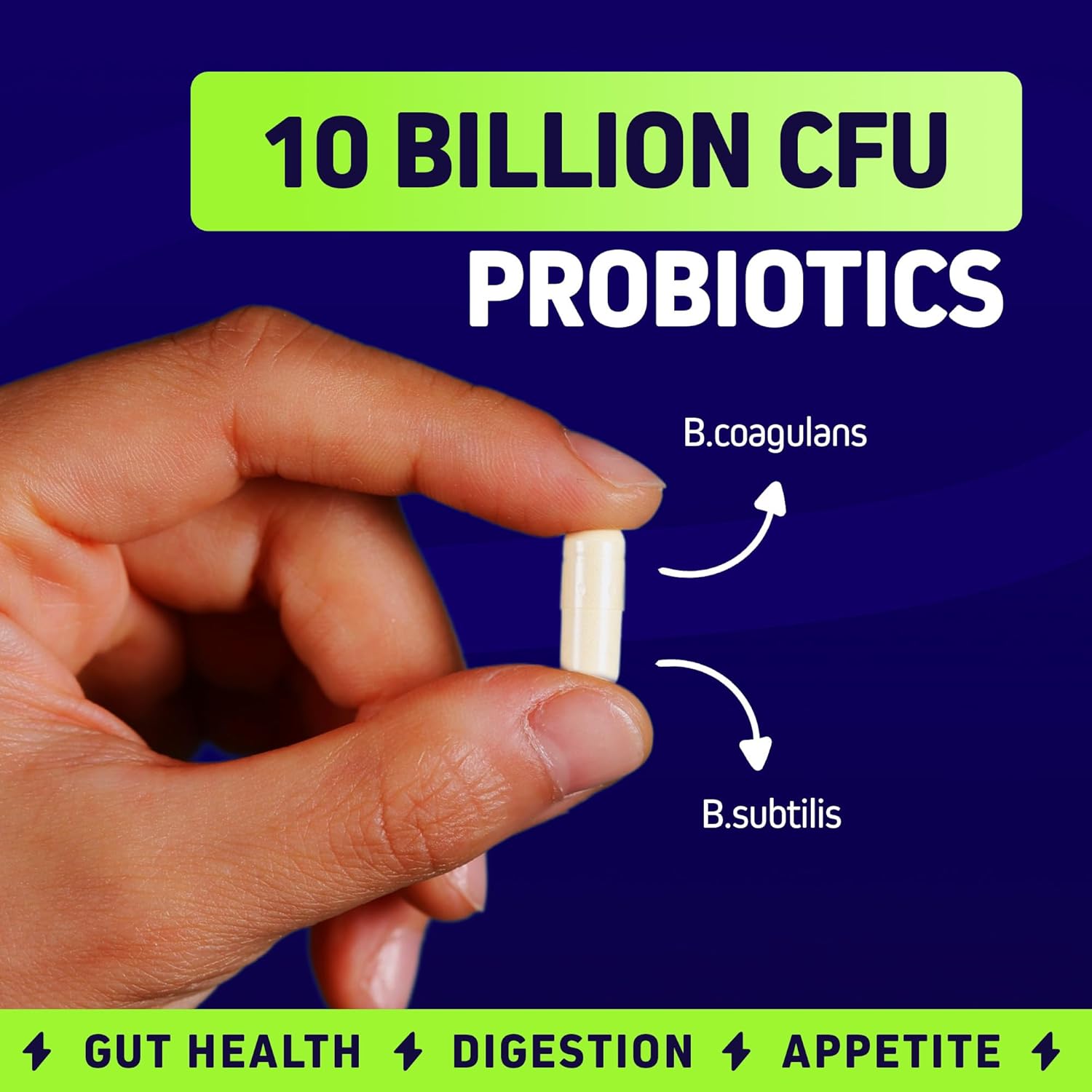 Probiotic Blend for Gut Health & Digestion: 10 Billion CFU of clinically studied probiotics (B. coagulans & B. subtilis) help maintain digestive balance, reduce bloating, and optimize nutrient absorption—key factors for overall metabolic wellness.