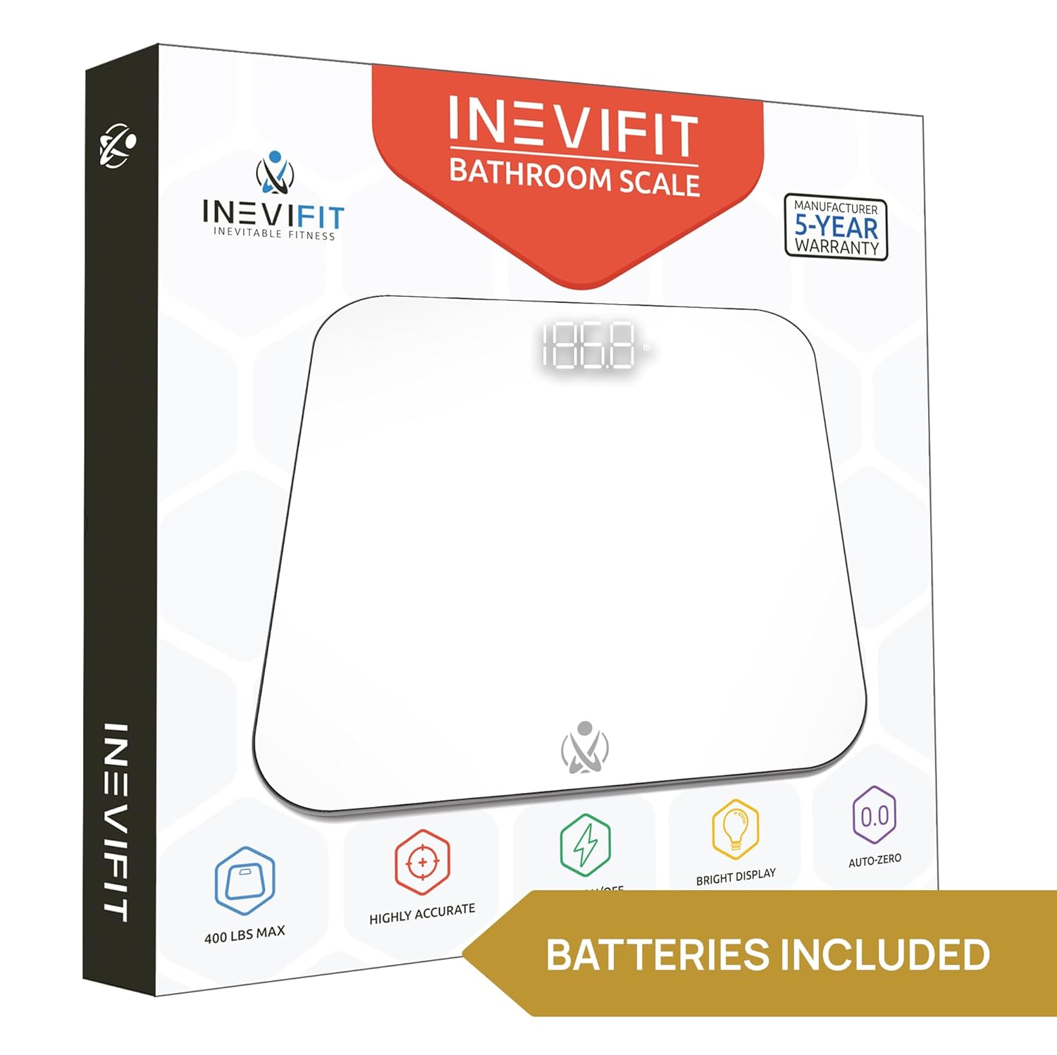 INEVIFIT Bathroom Scale, Highly Accurate Digital Bathroom Body Scale, Measures Weight up to 400 lbs. Includes Batteries