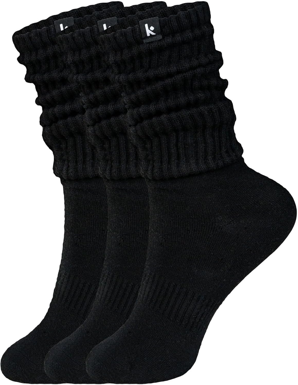 Kamo Fitness Cozy 3-Pair Pack – Scrunch Long Crew Socks for Women, Soft & Breathable Boot and Slouch Socks, Size 5-9