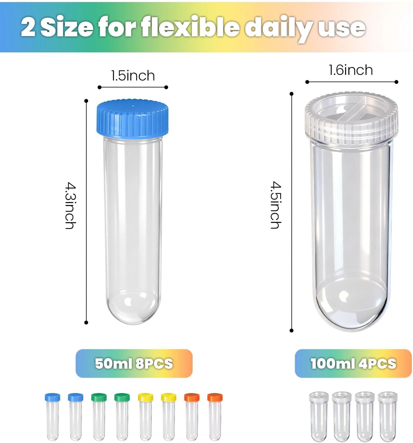 Pre-Measured Portions for Daily Fitness Routine – This protein powder travel container set includes 8×50ml single-serve bottles and 4×100ml large containers, ideal for protein powder, supplement powder, creatine or pre-workout. Perfect portion control helps support daily prep, avoids waste, and keeps your fitness routine consistent on busy days